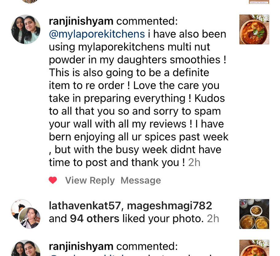 Ingredients - whole roasted almonds, pista, walnuts, cashews, oats, flax seeds, melon seeds, chia seeds, pure moringa powder, turmeric, milk solids. Mix in hot milk. 1 tbsp for 1 cup of milk. No sweetener added. Strain if you don't like the grits. You can add sugar or honey if you like it sweet.